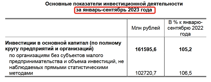 Кстати, тогда тоже был замечен какой-то скачкообразный объем инвестиций за последний квартал уже 2022 года . Тогда откуда-то «свалились» за октябрь - декабрь 202 млрд рублей инвестиций, хотя за январь – сентябрь показатель составил лишь 142 млрд.