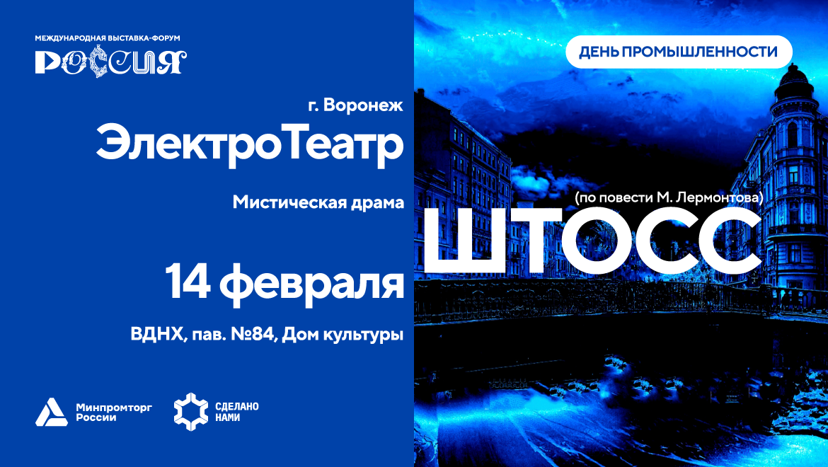 Масштабное празднование Дня промышленности на ВДНХ в рамках Форума национальных достижений, которое состоится 14 февраля, наглядно продемонстрирует ключевые достижения и результаты развития отрасли. Знаменательно, что откроет программу уникальное событие - спектакль воронежского заводского «ЭлектроТеатра».