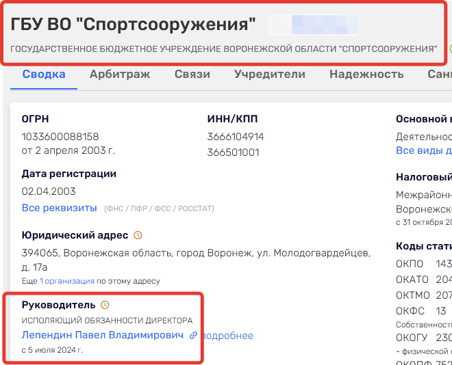 ГБУ «Спортсооружения» в последнее время было особенно известно тем, что с апреля 2022 года ему было передан Центральный стадион профсоюзов сроком на пять лет по договору безвозмездного пользования. В спортивный объект менее чем за два года было инвестировано под 500 млн рублей из областного бюджета. А в конце прошлого года у Центрального стадиона профсоюзов (что на ул. Студенческая, 17) появился новый собственник. За 220 млн рублей объект выкупило правительство Воронежской области в лице его министерства имущественных и земельных отношений .