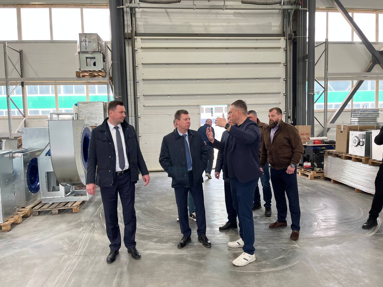 Заместитель Председателя Правительства Воронежской области Константин Кузнецов вместе с министром строительства Воронежской области Артуром Кулешовым и генеральным директором КП ВО «Единая дирекция» Романом Рогозиным посетили уникальное для региона предприятие по производству вентиляционного оборудования - ООО «Вентиляционные системы».