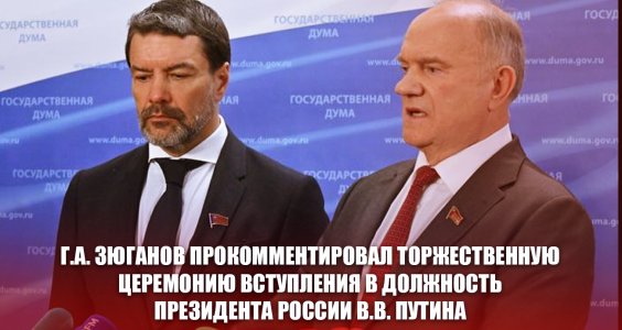 7 мая в Московском Кремле состоялась торжественная церемония вступления в должность Президента России В.В. Путина. Участвовавший в церемонии Председатель ЦК КПРФ, Руководитель фракции КПРФ в Госдуме Г.А. Зюганов в тот же день дал комментарий журналистам на брифинге в Госдуме.