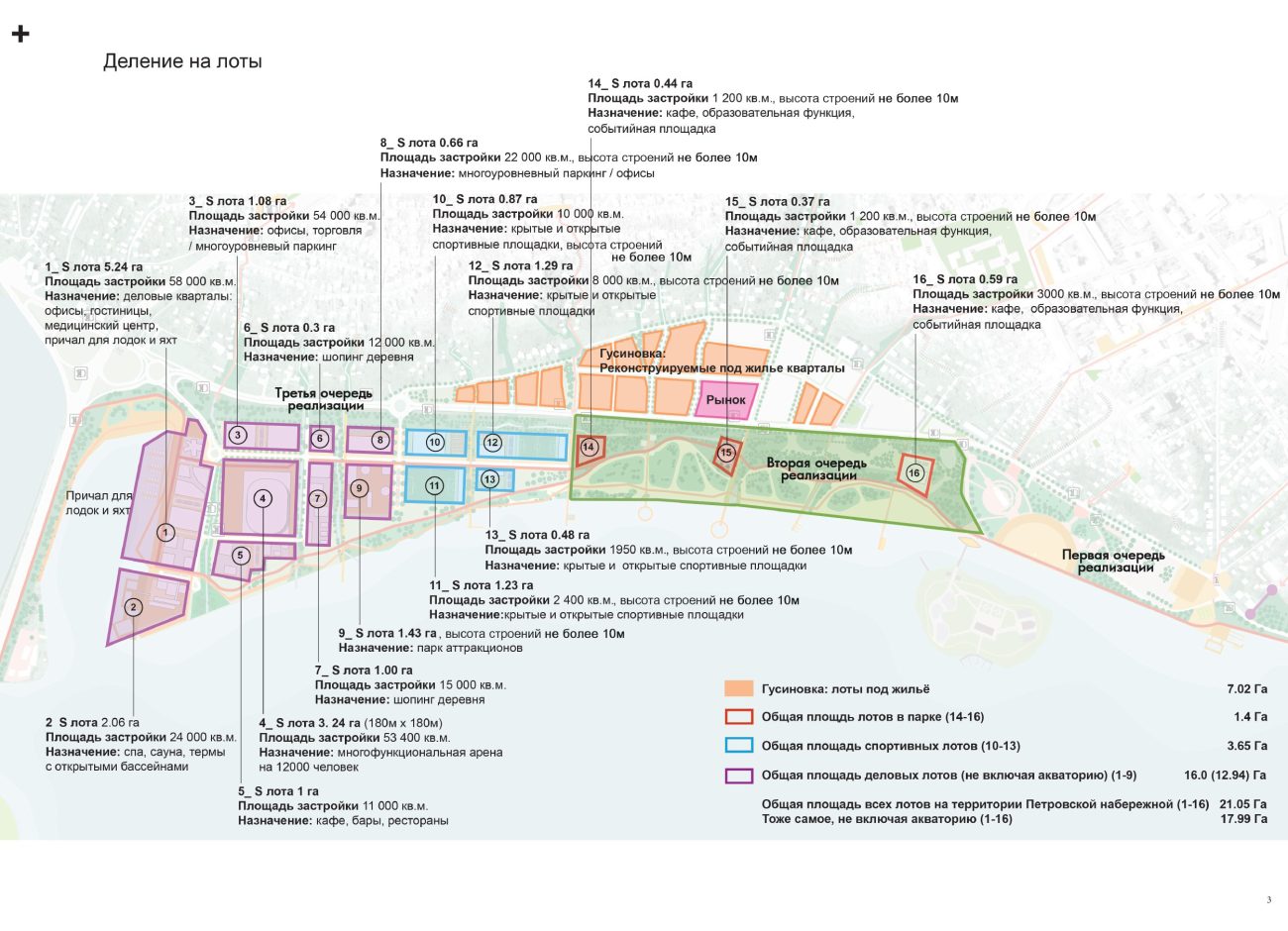 Губернатор Воронежской области Александр Гусев заявлял журналистам, что в рамках третьей очереди развития Петровской набережной строительства многоэтажных домов не будет. Господин Гусев уверял, что, согласно представленной концепции, на набережной планируется создать несколько функциональных зон: гостиничная зона, оздоровительная зона, спортивная зона с открытыми и закрытыми площадками, зона отдыха с бассейнами и термами и гастрономическая зона.