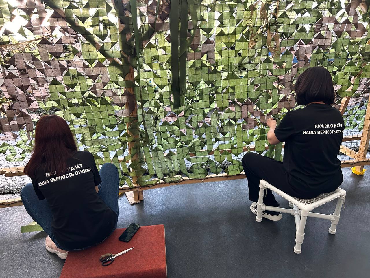 Нововоронежские молодогвардейцы продолжают плести маскировочные сети для военнослужащих