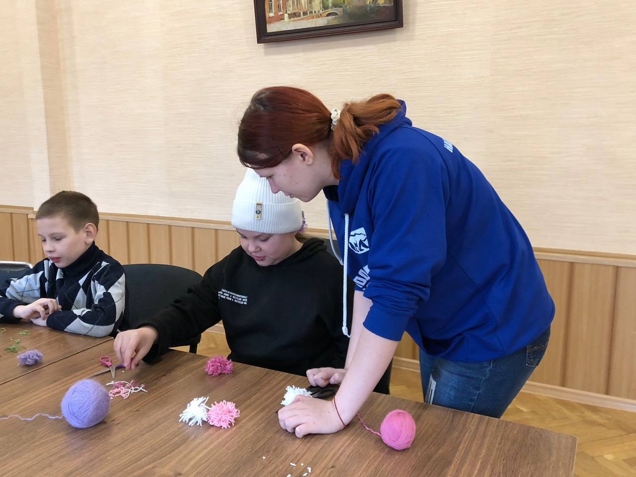 В пункте временного размещения на базе санатория им. Дзержинского воронежские молодогвардейцы провели для детей мастер - класс по изготовлению игрушек из ниток.