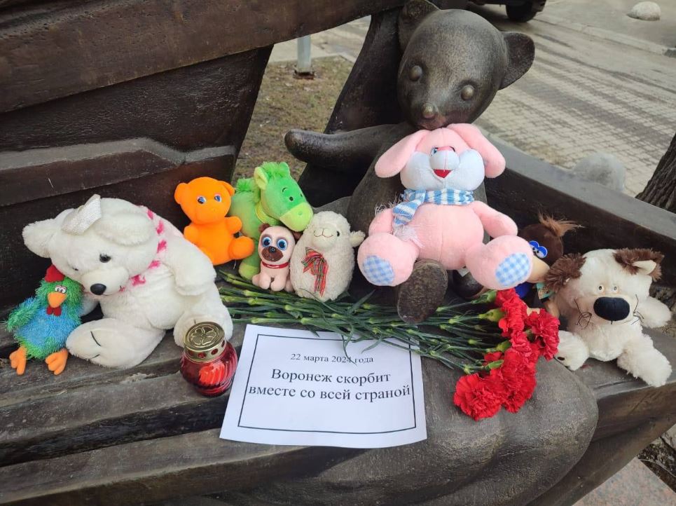 Уже на следующий день воронежцы в знак солидарности с москвичами организовали стихийные мемориалы. Горожане стали нести цветы, игрушки и свечи в сквер неподалёку от «Максимира» и сад пионеров, который находится у дома 34 по улице Театральной. Там сегодня, 24 марта, прошла акция памяти жертв этой трагедии.