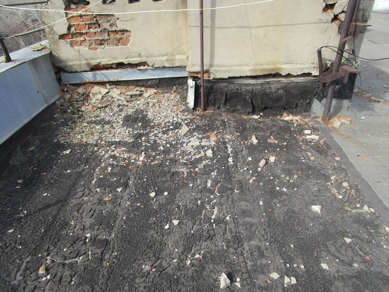 Мягкая кровля действительно оказалась испорченной: нарушена ее водонепроницаемость, рулонное покрытие в местах примыкания к выступающим поверхностям оголовков дымовых и вентиляционных каналов и парапетам значительно стерто и местами разорвано, что послужило причиной протечек на стены и потолки лестничной клетки подъезда № 2.