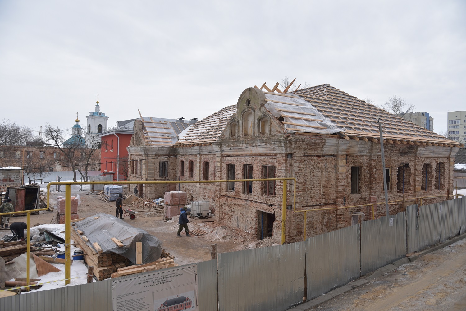 В Доме Гардениных уже выполнены демонтажные работы кровли и внутри здания, работы по усилению стен, устройству стропильной системы. Практически завершены работы по восстановлению кирпичной кладки оконных проёмов и цокольной части здания.