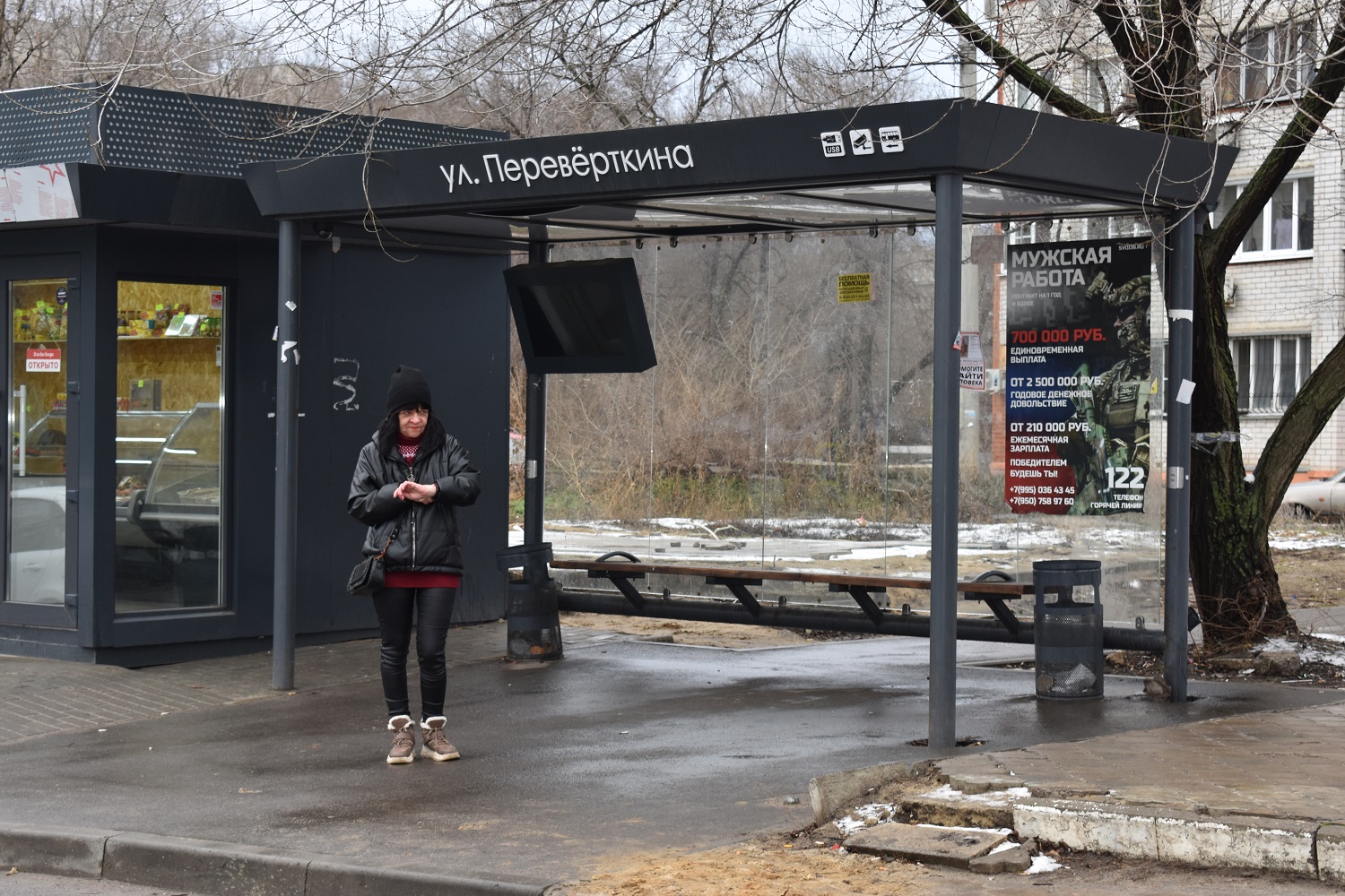 65-летняя воронежская пенсионерка Людмила Петровна живёт на улице Перевёрткина. После перенесённой операции ходить тяжело. Благо, остановка общественного транспорта находится прямо под окнами её дома. Отсюда следует только один маршрут № 66, который идёт до Юго-Западного рынка. Но вот дождаться его крайне проблематично.