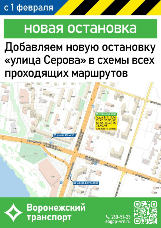 Сообщается, что неё будет удобно дойти пешком к новым домам на улице Ленинградской Новая остановка для 19 маршрутов появится в Воронеже Остановку «Улица Серова» внесут в схемы маршрутов с 1 февраля.