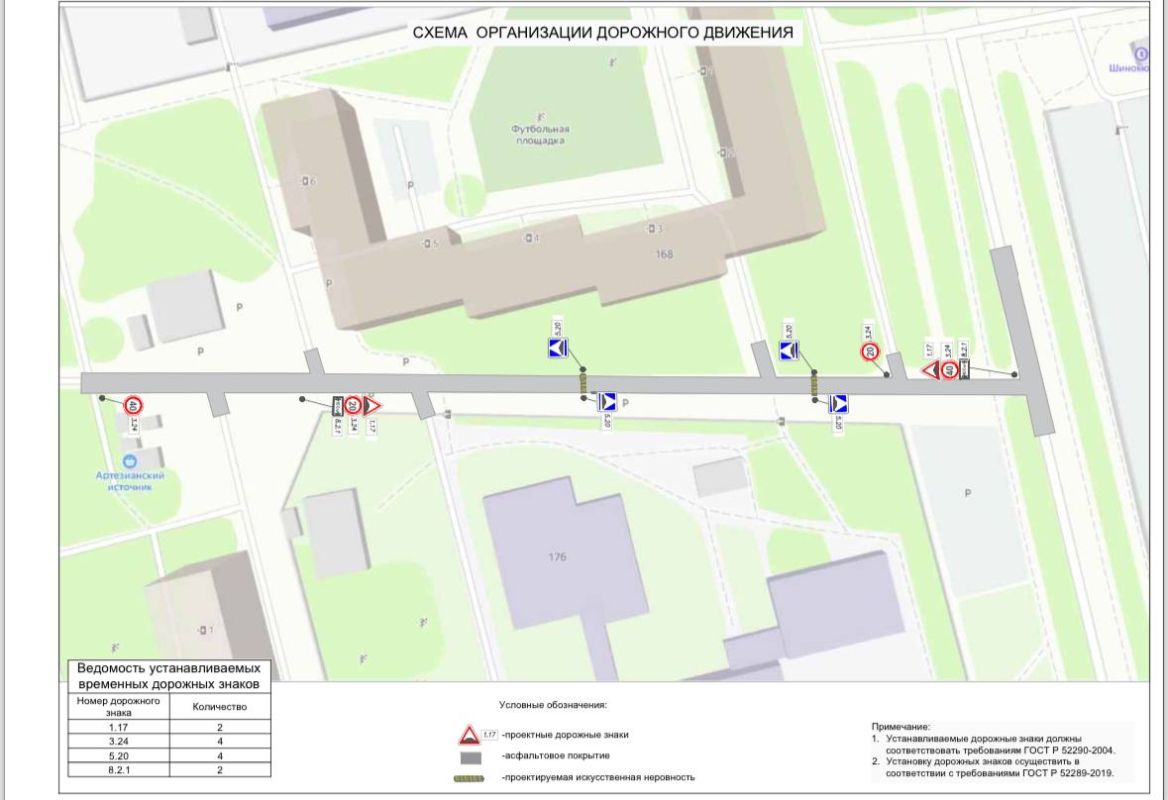 5.20, 1.17 «Искусственная неровность» 3.24 «Ограничение максимальной скорости» 8.2.1 «Зона действия»Новые средства организации дорожного движения планируют установить до 26 июля.