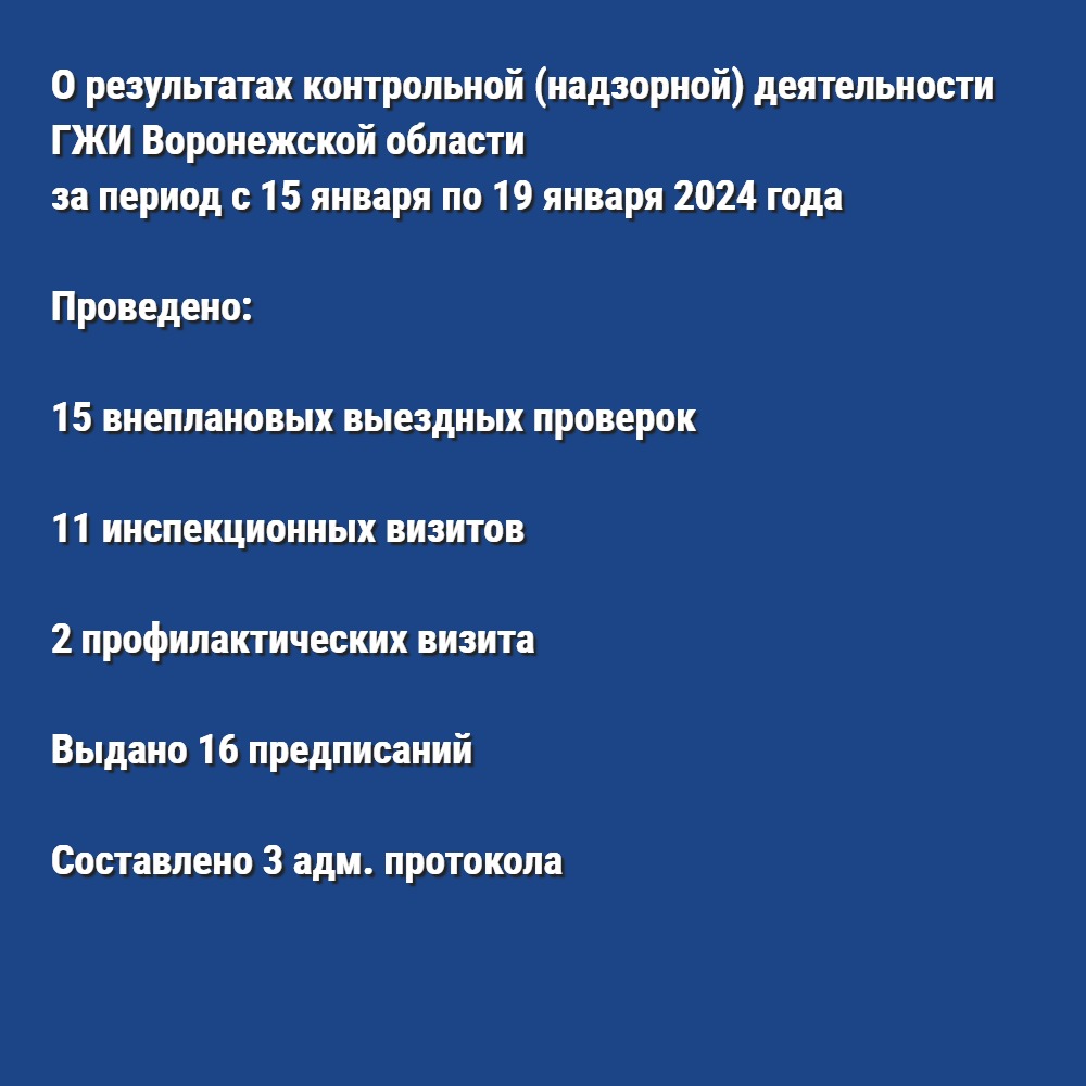 О результатах контрольной (надзорной) деятельности ГЖИ Воронежской области за период с 15 января по 19 января 2024 года