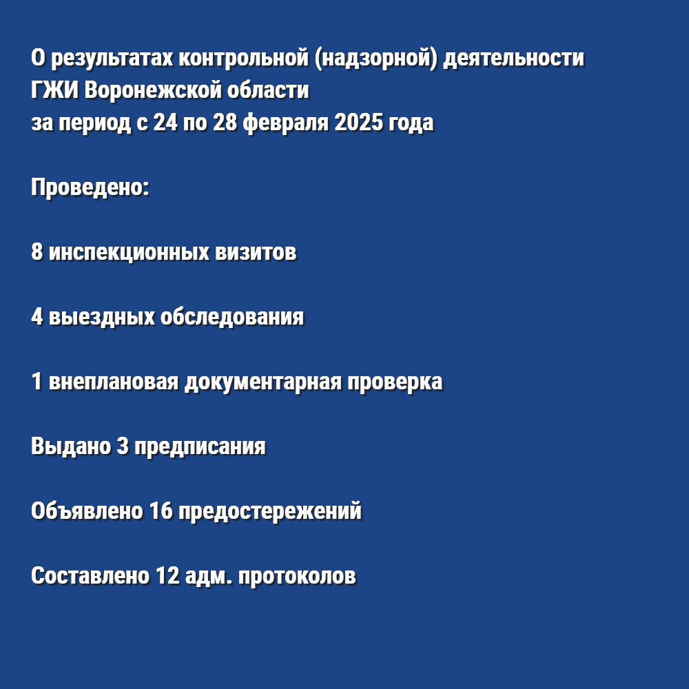 О результатах контрольной (надзорной) деятельности ГЖИ Воронежской области за период с 24 по 28 февраля 2025 года