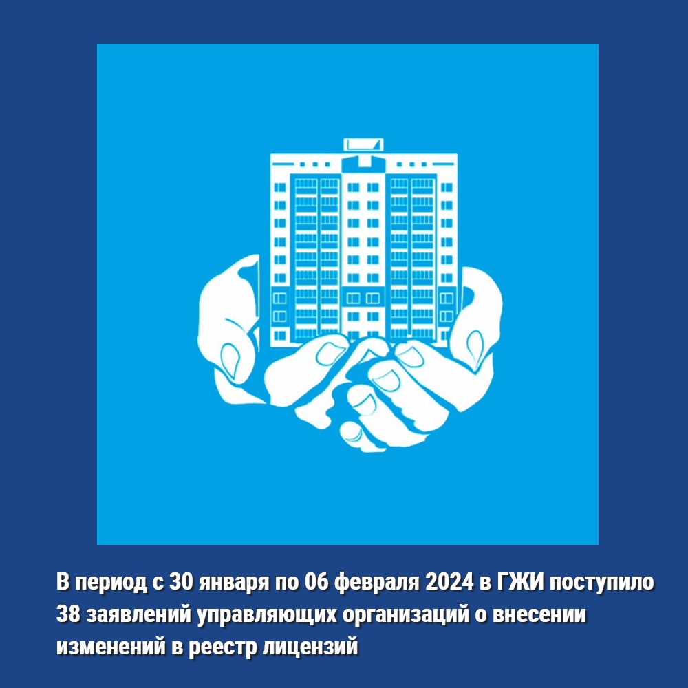 В период с 30 января по 06 февраля 2024 в ГЖИ поступило 38 заявлений управляющих организаций о внесении сведений и изменений в реестр лицензий Воронежской области