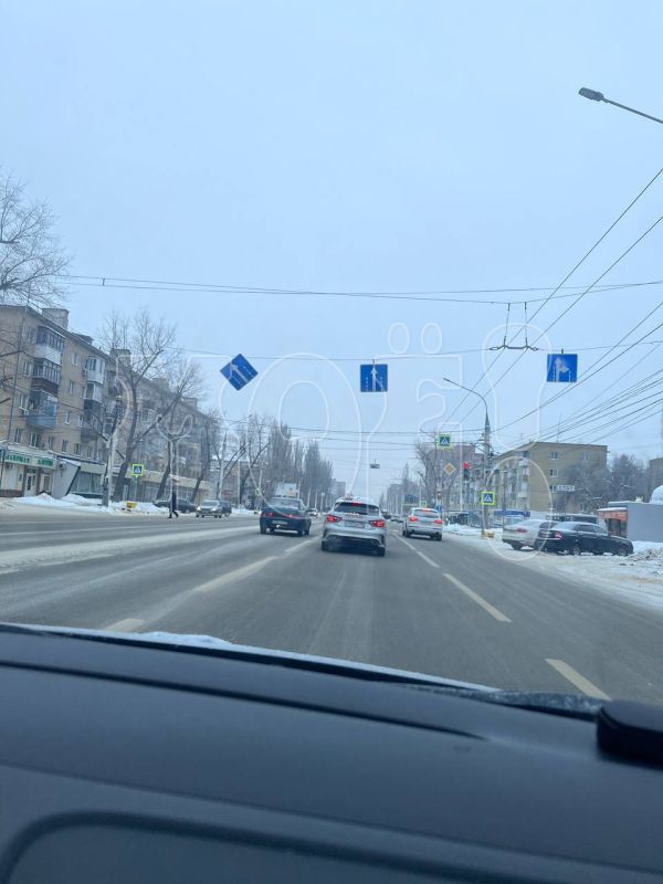 Интересные кадры воронежец снял, проезжая по Ленинскому проспекту, где перекрёсток с Арзамасской.