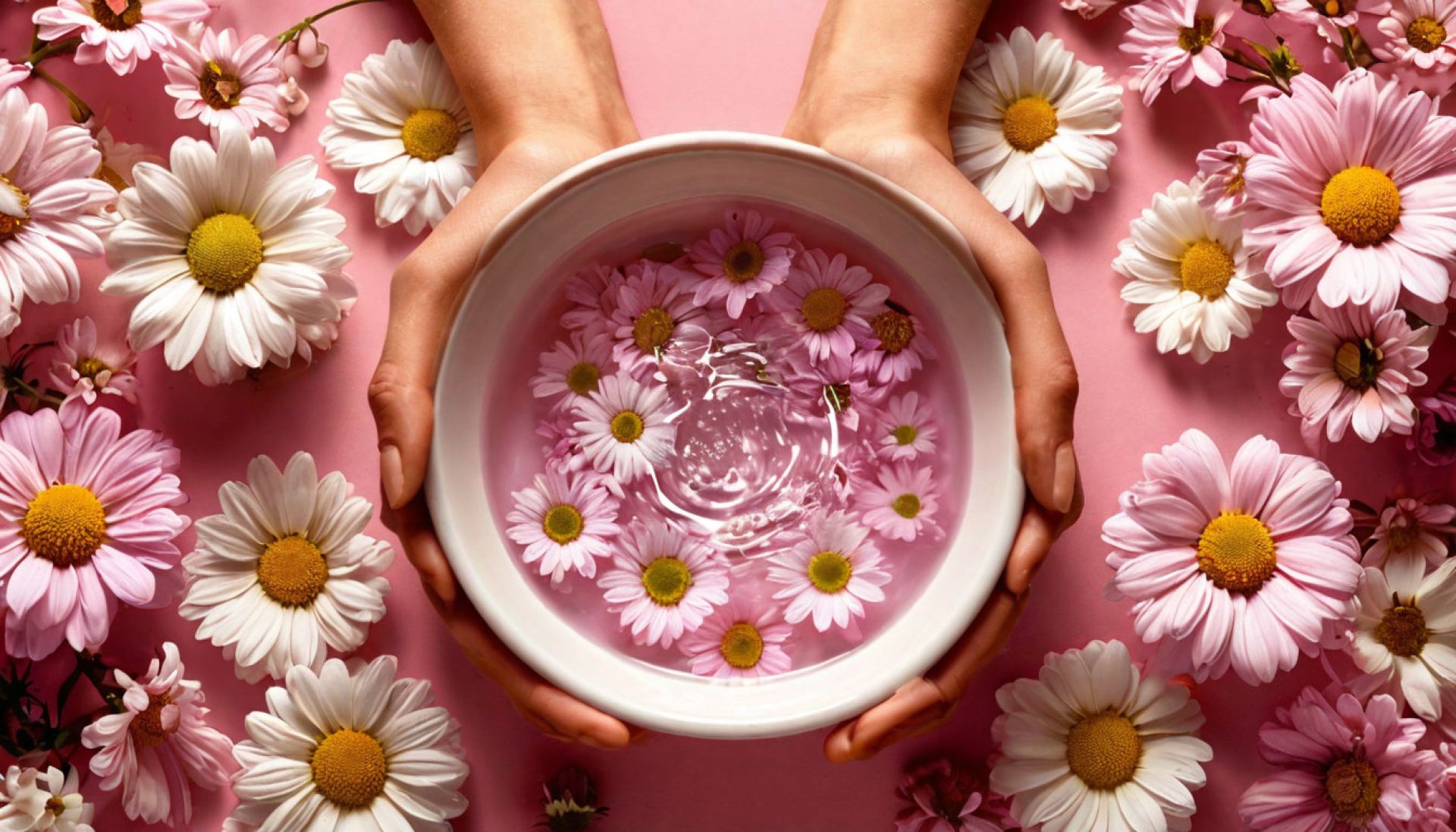 ЦветочнаяСмешать по 2 ч. л. эфирных масел абрикоса и миндаля, добавить по две капли розового масла, масла розмарина и жожоба. Хорошо перемешать. Добавить получившуюся смесь в ванночку с 1,5 л. тёплой воды и опустить руки на 20 минут.