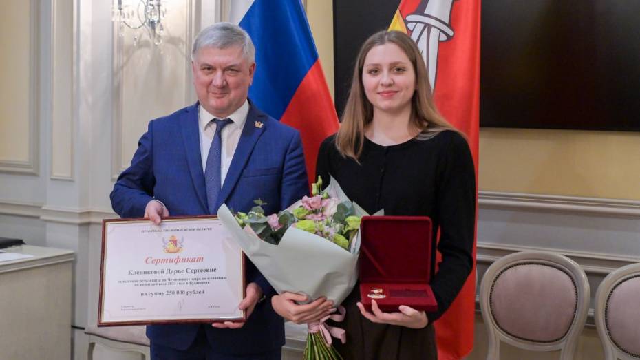 Губернатор Александр Гусев вручил воронежской спортсменке Дарье Клепиковой областную награду